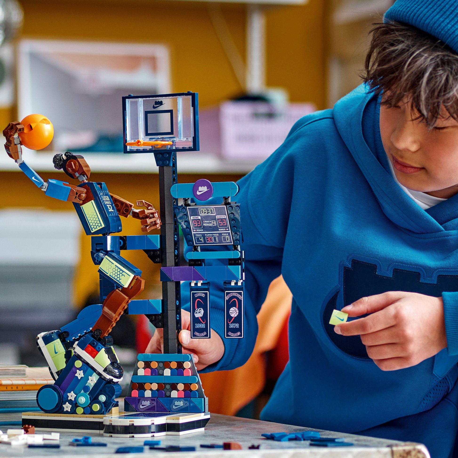 - Kids’ sports toy – A basketball hoop, scoreboard, championship banner and spectators complete the slam dunk scene and there are fun LEGO® and Nike Easter eggs for fans to discover