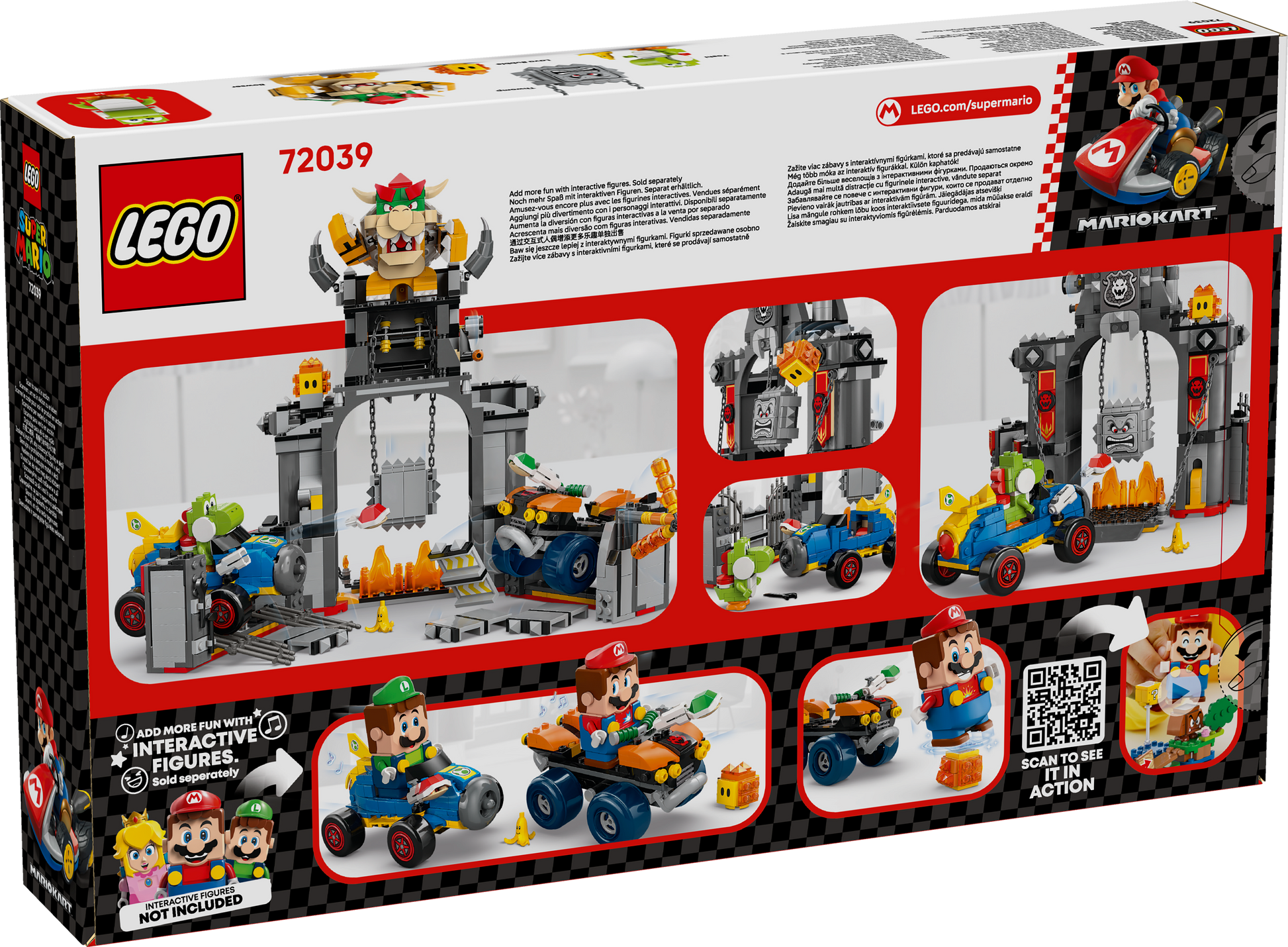 LEGO® Super Mario™ racetrack set – Launch shells from the Standard ATV and Mach 8 kart, race around the castle (or through its foldout walls!), dodge the spinning Fire Bar, and more
