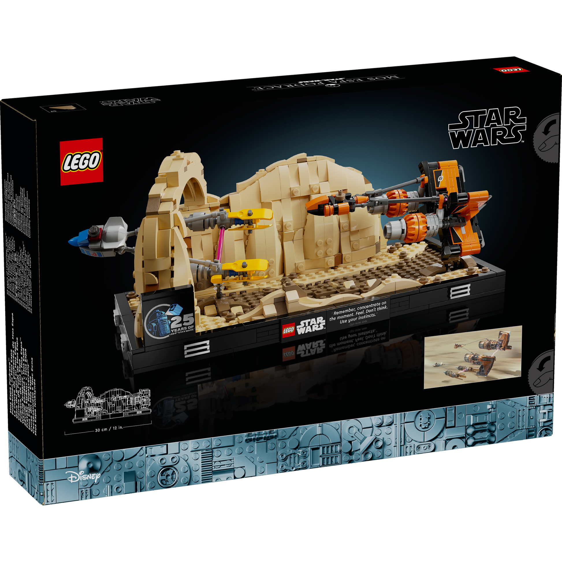 Made for display – The set features the Arch Canyon part of Tatooine’s Mos Espa Podracing circuit, plus a LEGO®Star Wars™ 25th anniversary brick and a plaque with a Qui-Gon Jinn quotation