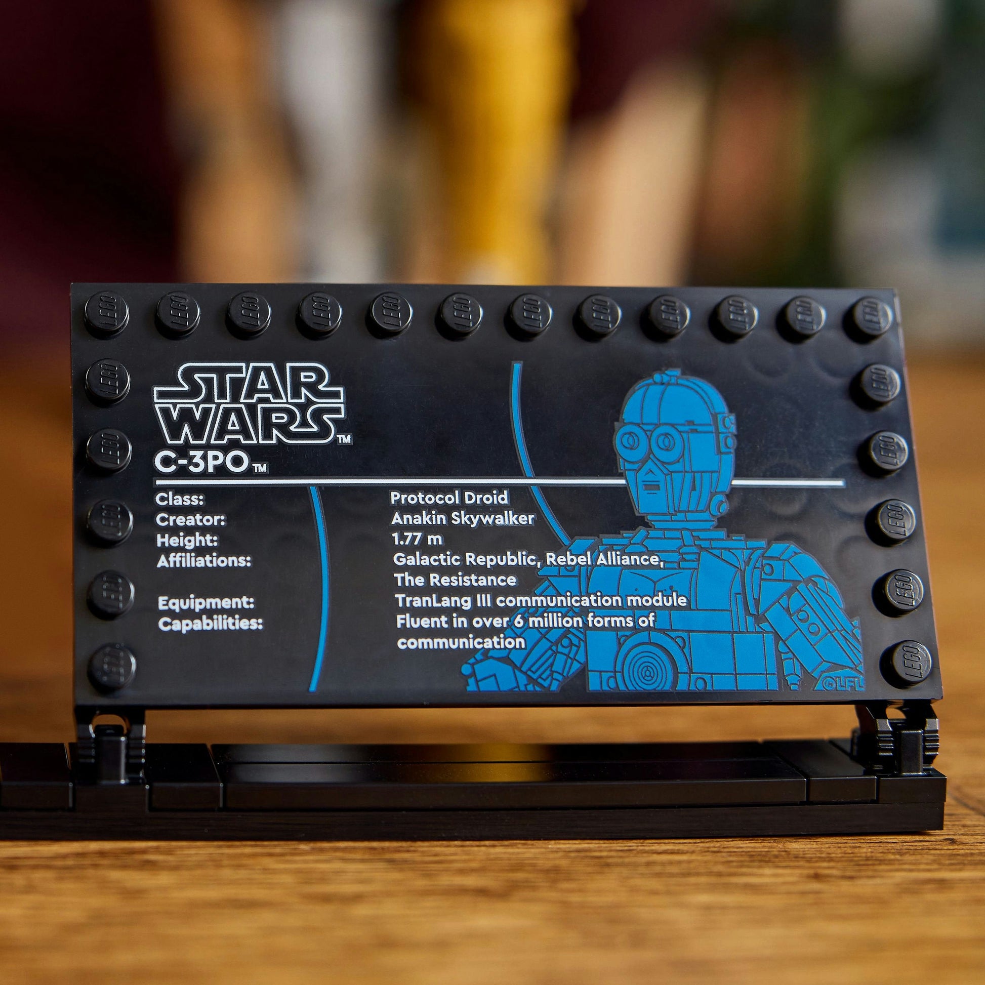 This LEGOStar Warsset for adults also features a stand with a C-3PO information plaque and space for the included C-3PO LEGO minifigure, plus a LEGOStar Wars25th anniversary brick to complete an eye-catching centrepiece.
