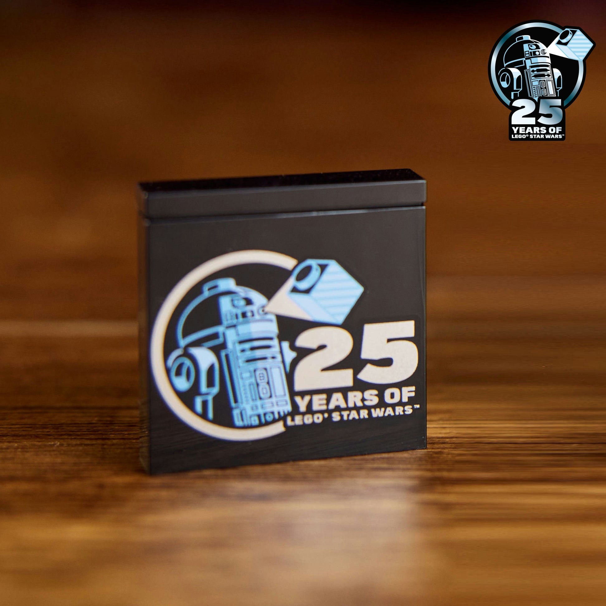 25th anniversary centrepiece – The set includes a stand with a C-3PO information plaque and space for the C-3PO LEGO® minifigure, plus a LEGOStar Wars™ 25th anniversary brick