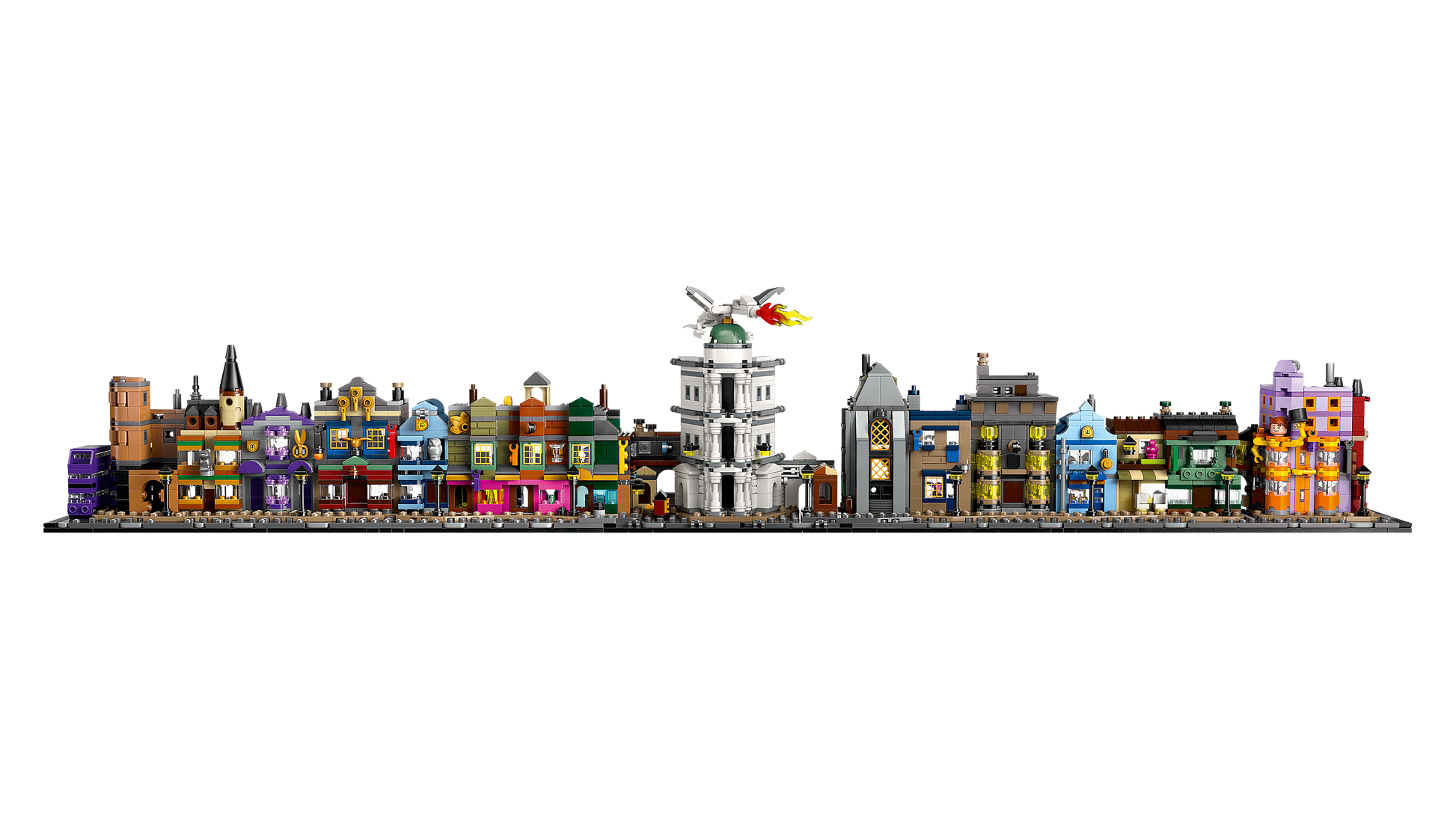 LEGO Harry Potter Die Zauberläden der Winkelgasse (76444) ist ein detailreicher Modellbausatz im Mikromaßstab, das dich eine faszinierende Zauberwelt betreten lässt. Dieses magische Modell aus LEGO Steinen lädt erwachsene Fans der Harry Potter Fantasy-Abenteuer ein, die legendären Läden in der Winkelgasse nachzubilden, unter anderem Weasleys Zauberhafte Zauberscherze, den Eissalon von Florean Fortescue, Ollivanders Zauberstabladen, Mr. Mulpeppers Apothekarium, Gringotts Zaubererbank, Zum Tropfenden Kessel sowie das Hauptbüro von Der Tagesprophet. Jedes dieser Gebäude ist nicht nur an seiner unverwechselbaren Fassade sofort zu erkennen, sondern beherbergt auch jeweils ein faszinierendes Easter Egg. Dieses magische Bauset für Erwachsene ist ein imposanter Hingucker und macht sich super in deinem Zuhause oder im Büro. Du kannst die Winkelgasse entweder mit beiden Straßenseiten oder als eine einzige lange Häuserzeile ausstellen. Oder du zerteilst die Gasse in 5 Segmente, um die Läden näher zu betrachten. Die 12 einzigartigen und seltenen LEGO Harry Potter Mikrofiguren und der Fahrende Ritter runden das Sammlerstück und faszinierende Set ab. Das Spielset im Mikromaßstab gehört zu einer ganzen Reihe von LEGO Sets für Erwachsene und ist kombinierbar mit dem LEGO Harry Potter Schloss Hogwarts mit Schlossgelände (76419) Bauset. Das Modell ist eine schöne Belohnung für dich selbst oder ein tolles Geschenk zu Weihnachten oder zum Geburtstag für andere Harry Potter Fans.