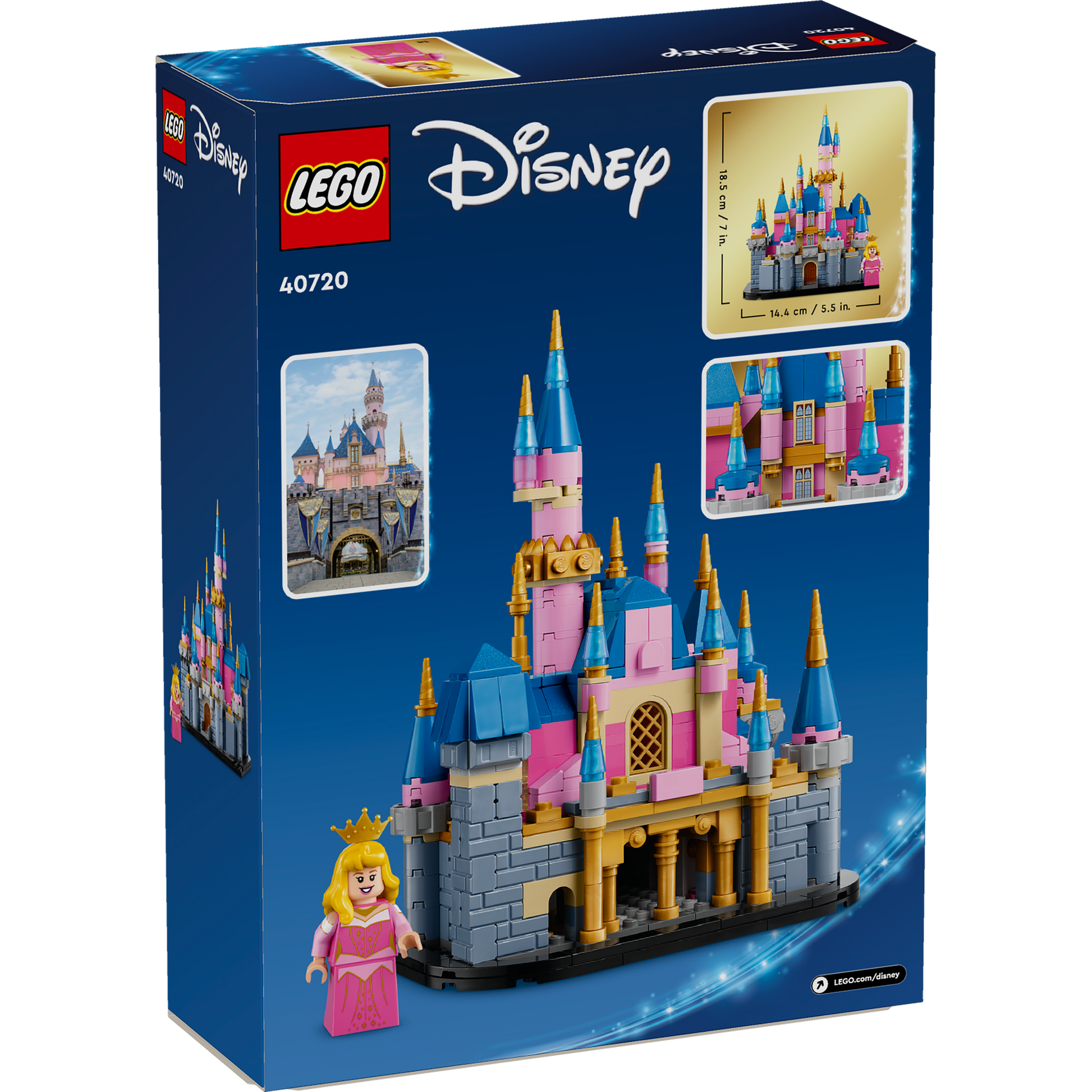 Delight a Disney fan with the LEGO® Mini Disney Sleeping Beauty Castle (40720), an enchanting castle building toy for kids aged 12 and up. Inspired by the Sleeping Beauty Walkthrough attraction at Disneyland California, this mini-Disney castle includes LEGO pieces in traditional shades of pink, blue and gold. The buildable castle playset also includes a Sleeping Beauty mini-doll, who brings the magic to life in her instantly recognizable pink dress and golden crown.