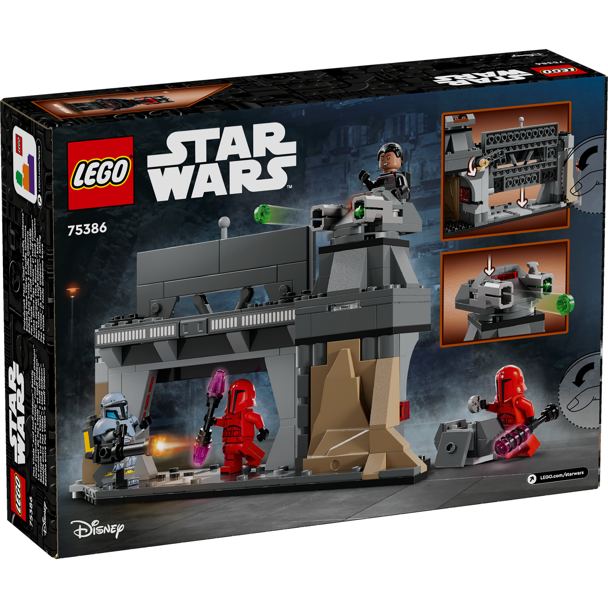 Build the drama of an epic Star Wars: The Mandalorian Season 3 scene with the LEGO® Star Wars™ Paz Vizsla and Moff Gideon Battle set (75386) for boys, girls and any fan aged 7+. A cool fantasy gift for kids, this LEGO brick-built toy playset features a Mandalorian base with an armoured door with a slam-shut trigger, control panels and a rotating, stud-shooting turret. There are also 4 collectible LEGO Star Wars: The Mandalorian minifigures to play out Paz Vizsla’s standoff against Moff Gideon (wearing Dark Trooper Armor) and the Imperial Praetorian Guards, plus accessories such as Moff Gideon’s jetpack and a storage box containing a thermal detonator element for creative play.
