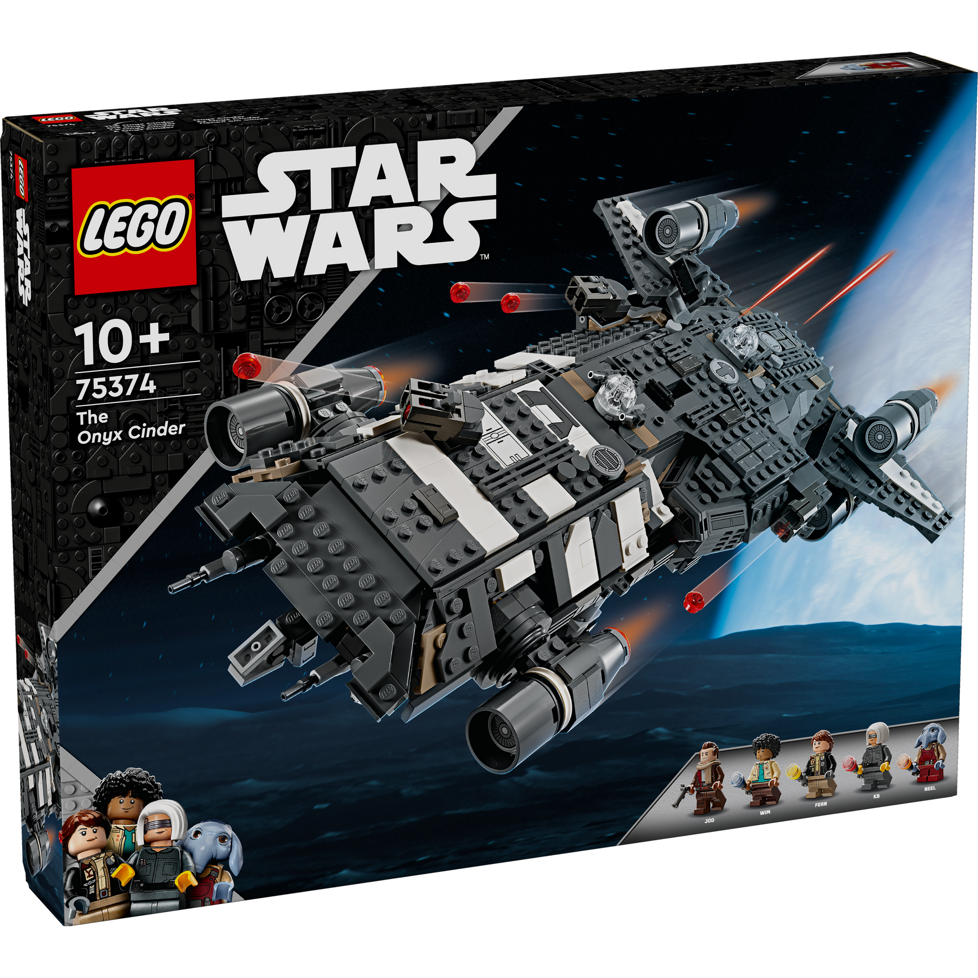 Relive Star Wars: Skeleton Crew adventures with this set, featuring The Onyx Cinder buildable starship toy and 5 LEGO® Star Wars™ minifigures.