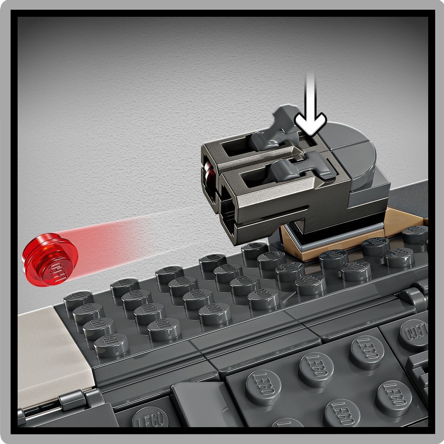 Authentic features – A cockpit, compartment with seats for 4 LEGO® minifigures, rotating engines for landing/takeoff or flight, 2 stud shooters and 2 rotating turrets, each with 2 stud shooters